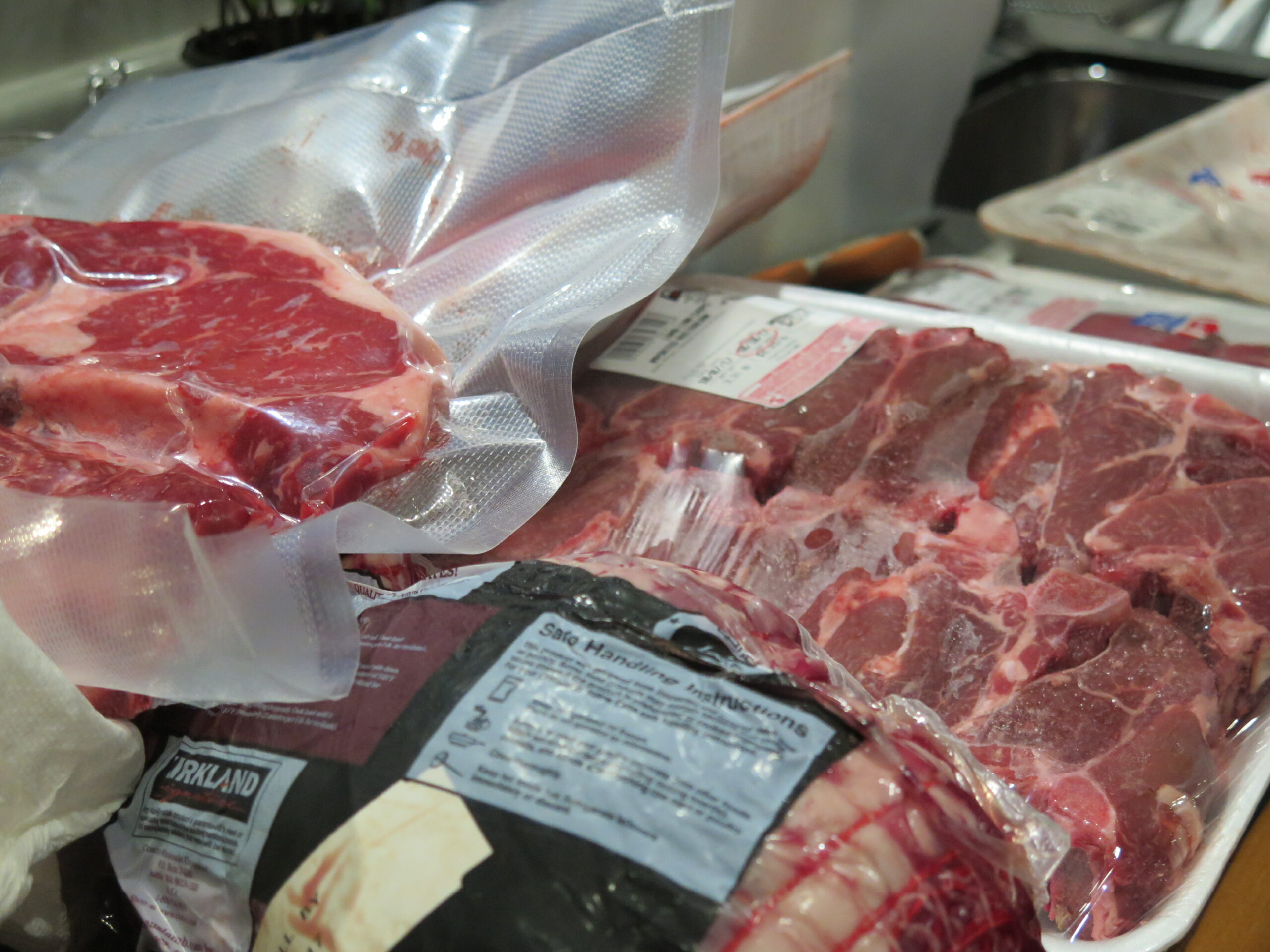 I found a Southwestern recipe to marinate the skirt steak and a lime cilantro marinade for the chicken. Only ran out a bit on the lime…shhh lemon was substituted! Don verified the Foodsaver we’ve kept since 2002 was still working and then proceeded to vacuum pack the meats, while I labeled cans and broke down boxes.