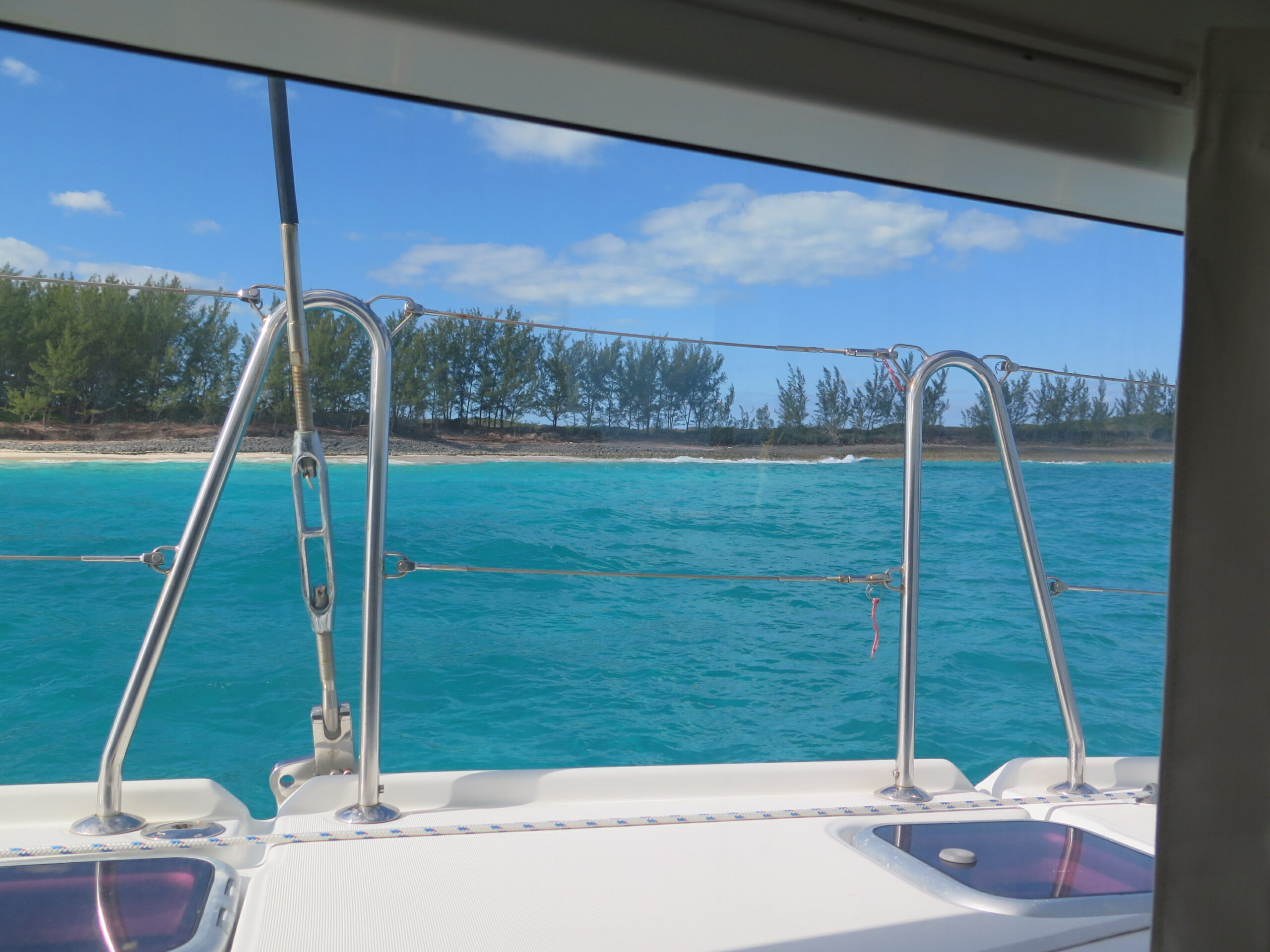 All in all, it was a fun crossing.  We arrived early enough to drop anchor in Lynyard Cay and join happy hour on the beach with our guests, Walter & Gail Lundstrom, and new and old cruising friends from Georgetown, Great Exhuma.