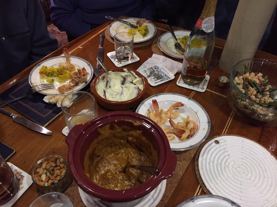 Flying our Ocean Crusing Club burgee (along with the Seven Seas Cruising Association burgee…), got the attention of the local Port Officer, Dianne Tetreault. Dianne organized a dinner at Clawsons which allowed us to meet several other OCC members including: Jonathan & Anne Lloyd (Sofia RYS), Howard & Sue Chambers (Sundowner), Murrey & Cate Basingthwight (SV Coolchange). Don and I followed up the next night with an invitation for “nibbles” (appetizers). For a last supper, Reg & Nicky Barker (SV Blue Velvet of Sark) invited all of us to their lovely English built boat. Reg amped things up by cooking Homer Smith shrimp several ways: butterflied and fried with House Audry recommended by Dianne, grilled with Old Bay to commemorate their time in the Chesapeake Bay, and steamed with garlic aoili. We met Lionel Sole & Elsie Downie (SV Ruby Tuesday), and along with the other OCC members. Typical for cruiser meals, everyone brought a side dish; I then discovered the joys of chocovino for our after dinner dessert.